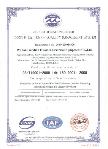 | 资质单位: 武汉国电华美电气设备有限公司 |