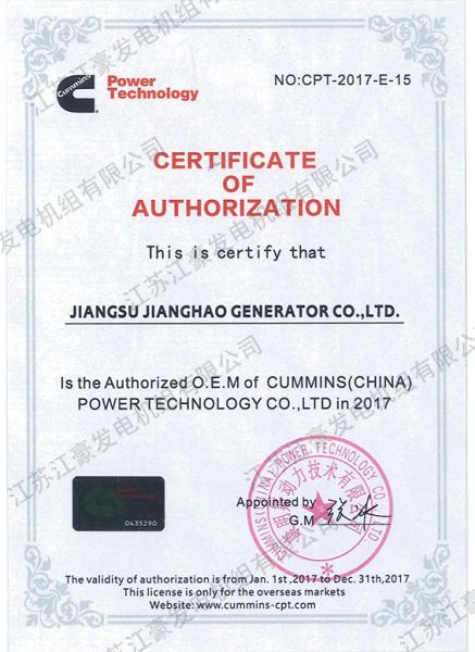 产品名称: 东风康明斯Cummins授权书 |