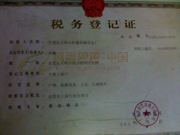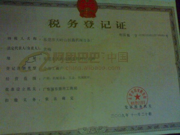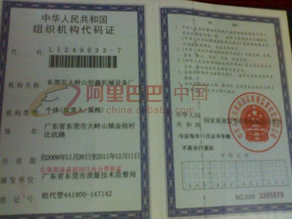 持证单位: 东莞市大岭山恒鑫机床设备厂