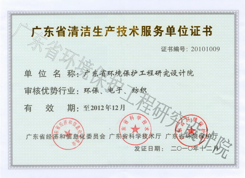 产品名称: 广东省清洁生产技术服务单位证书 |