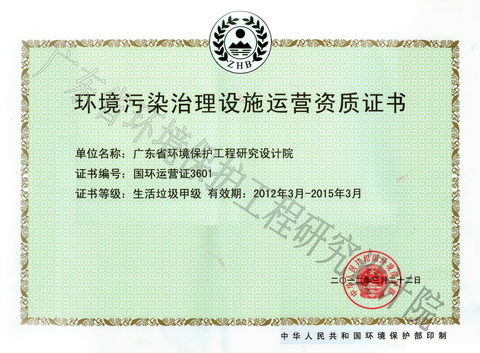 环境污染治理设施运营资质证书 发布时间: 2017-07-18 14:36:06 发布网站: 中国家具招标网