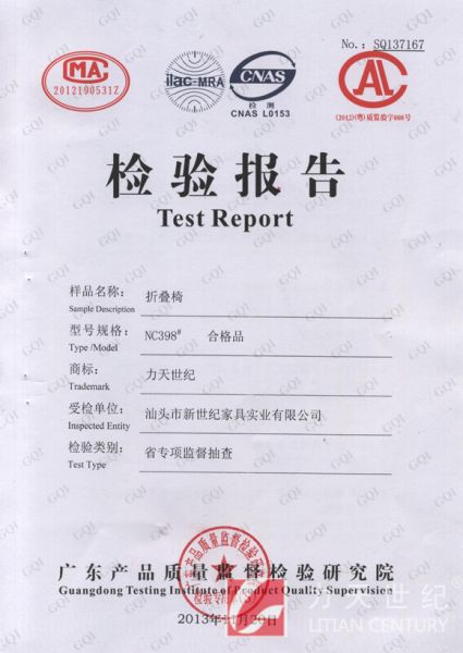 NC398检验报告 发布时间: 2017-07-31 15:31:20 发布网站: 中国家具招标网