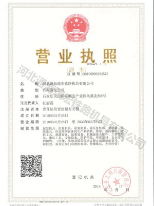 | 持证单位: 河北通海瑞宏铁路机具有限公司 |